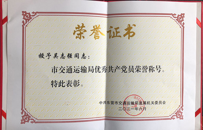 吳志強(qiáng)榮獲”市交通運輸局優(yōu)秀共產(chǎn)黨員“榮...